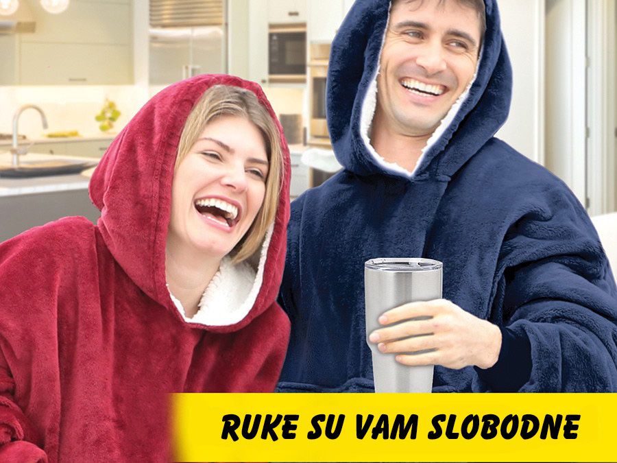 Da li volite ujutru da se pokrijete dok pijete kafu ili čaj? Ili dok gledate TV? Provedite hladnije dane kako dolikuje uz ovo udobno plišano ćebe sa rukavima.