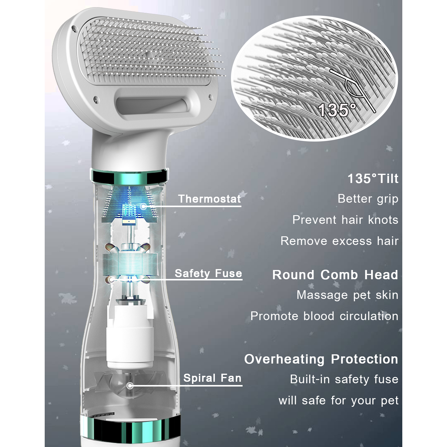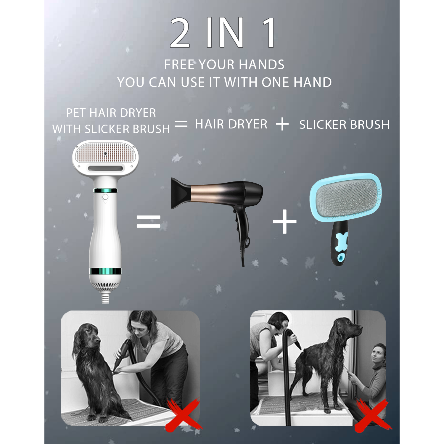 Sa "2u1" četka-fenom više ne morate da plašite svog ljubimca bučnim fenom za kosu ili da koristite obe ruke kada ga sređujete.